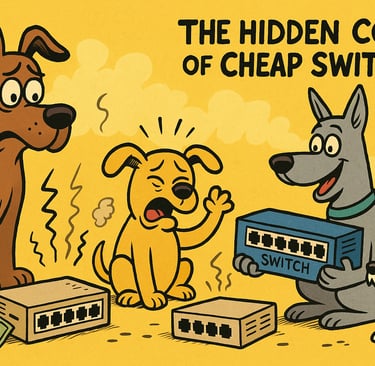 Here's the truth: Cheap switches seem like savings, but hidden costs add up in power bills, PoE limitations, performance problems, missing features, downtime disasters, and a lifespan measured in bathroom trips rather than years.